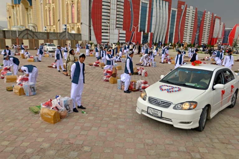 Robe blanche et immense châle vert recouvrant les femmes, tunique traditionnelle pour les hommes: quelque 70 couples se sont mariés lundi à Kaboul, en Afghanistan, lors d'une cérémonie collective permettant de s'unir à moindre coût, en présence de talibans armés.