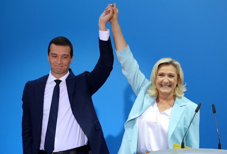 Elle a aussi passé les rênes du parti à son très jeune (26 ans lundi) numéro deux Jordan Bardella, qui a attaqué frontalement les adversaires de la candidate à l'Elysée, au premier rang desquels Emmanuel Macron.