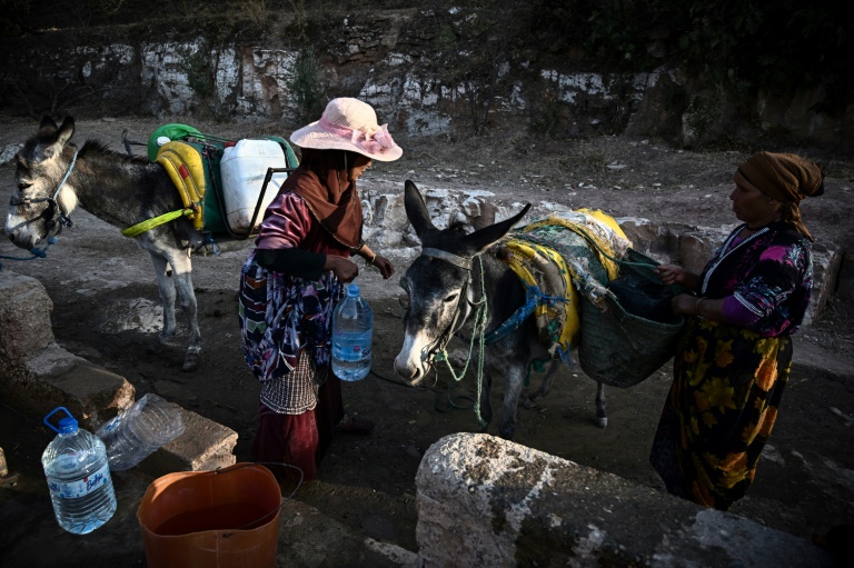 Les conditions de vie à Ighermane, un douar reculé du Haut-Altas, ont toujours été rudimentaires, mais "il y avait de l'eau dans les maisons. Là on est revenu à l’époque de nos aïeux", soupire Mohamed Oublay, 28 ans, après avoir rempli les bidons en plastique qui permettront de laver les ustensiles et préparer le dîner, en plein air.