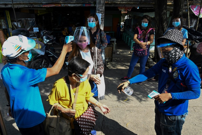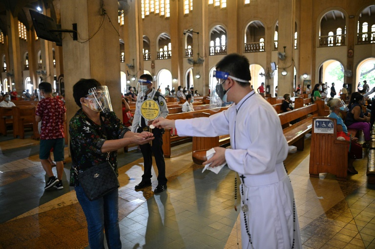Porter un masque ainsi qu'une visière de protection en plastique est devenu obligatoire dans les transports en commun et les espaces publics intérieurs pour lutter contre la pandémie. "Avec le Covid, c'est à la population de se montrer disciplinée", estime cependant Mme Tojanes, gérante d'un magasin à Manille.