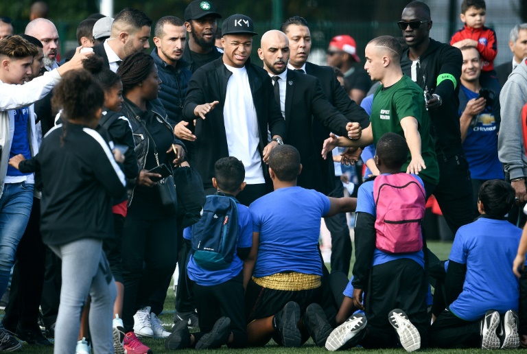 Trois mois après la victoire de l'équipe de France en Russie, l'attaquant star du PSG, qui a été sacré meilleur jeune joueur du Mondial, a passé une après-midi aux côtés de quelque 900 jeunes de cette ville populaire de banlieue parisienne où il a grandi.