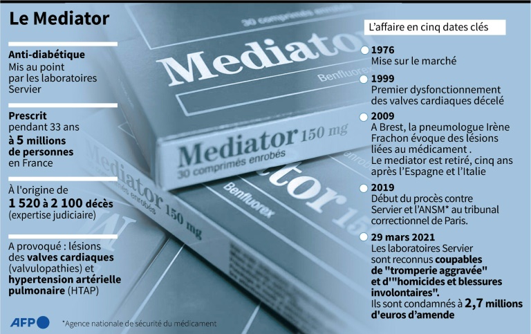 Commercialisé depuis 1976 comme adjuvant aux traitements antidiabétiques mais souvent prescrit indûment comme coupe-faim jusqu'à son interdiction en 2009, le Mediator est tenu pour responsable de centaines de décès.