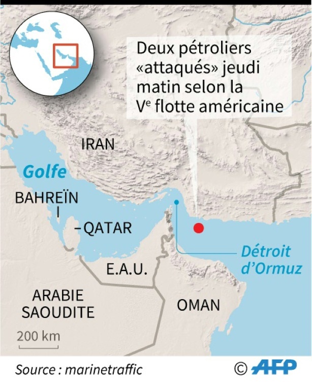 La Ve Flotte américaine, basée à Bahreïn, a indiqué jeudi avoir reçu deux "appels de détresse" tôt dans la matinée émanant de pétroliers en mer d'Oman qui auraient été la cible d'une "attaque". A Oslo, les autorités maritimes ont parlé clairement d'une attaque, signalant trois explosions sur un pétrolier norvégien.