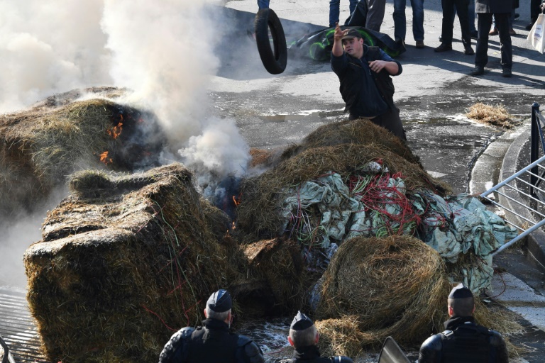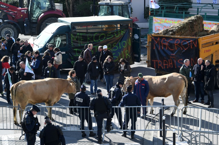 "Macron, trahison": des agriculteurs, qui craignent un afflux de viande bovine en provenance d'Amérique du sud, ont manifesté mercredi à travers la France, à la veille de la réception de 1.000 d'entre eux à l'Elysée et à trois jours du salon de l'Agriculture.