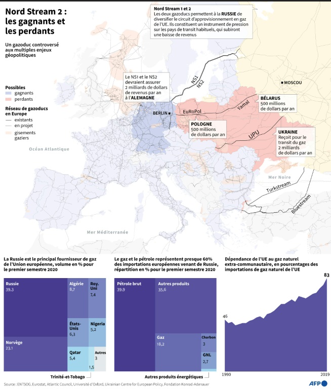 Mais la chancelière laisse ouverts un certain nombre de dossiers délicats, à commencer par le gazoduc Nord Stream 2, qui relie la Russie à l'Allemagne via la mer Baltique sans passer par l'Ukraine. Il est soutenu par Berlin, mais très critiqué à Washington et en Europe de l'Est.