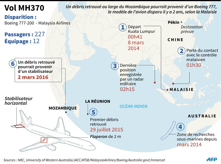 L'appareil de la compagnie malaisienne s'était volatilisé le 8 mars 2014 peu après son décollage de Kuala Lumpur à destination de Pékin, avec 239 personnes à bord, et se serait abîmé dans l'océan Indien.