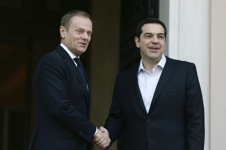 Le président du Conseil européen Donald Tusk (à gauche), rencontre le Premier ministre grec Alexis Tsipras, à Athènes, le 3 mars 2016