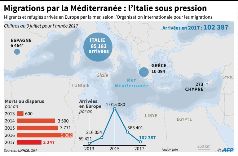 Plus de 100.000 migrants et réfugiés sont arrivés depuis janvier en Europe en traversant la Méditerranée, et 2.247 sont décédés ou portés disparus, a annoncé mardi l'Organisation internationale pour les migrations (OIM).