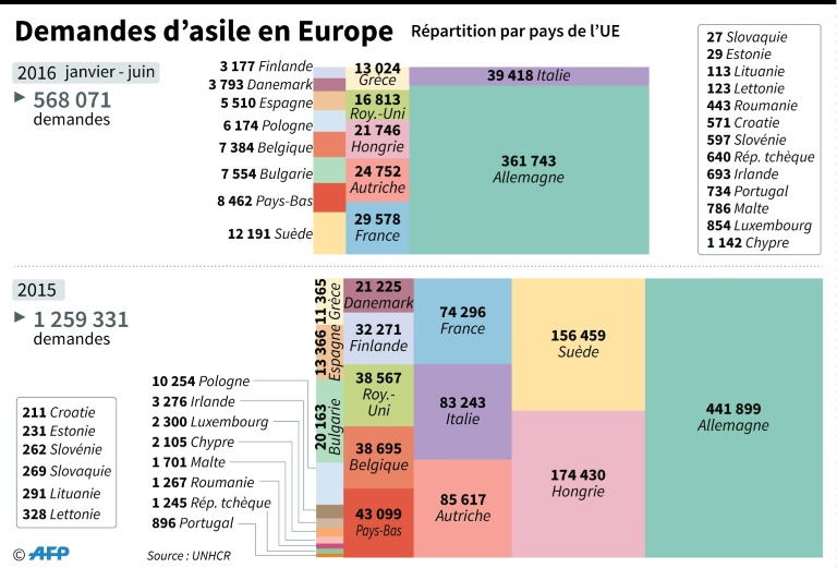 La Commission européenne a proposé d'instaurer de manière pérenne un mécanisme de répartition automatique des demandeurs d'asile, activé dans des cas exceptionnels. Les pays refusant de respecter leur quota d'accueil devraient payer 250.000 euros par personne non accueillie.