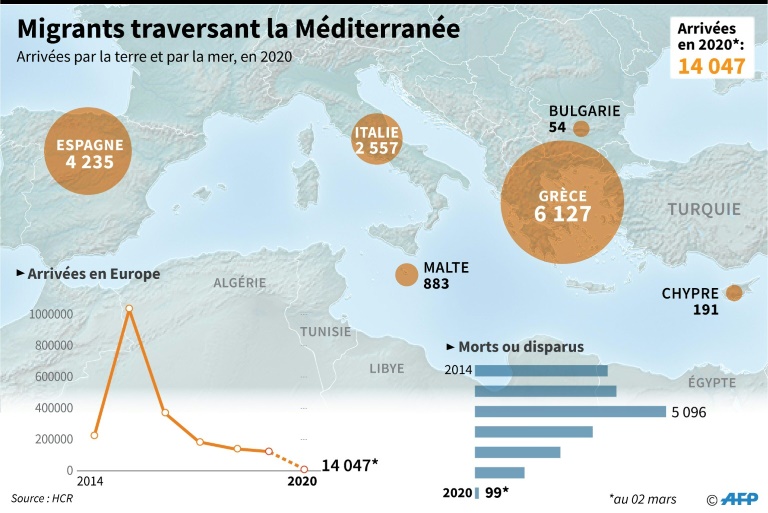 La présidente de la Commission européenne Ursula von der Leyen est attendue, avec les présidents du Conseil et du Parlement européens, Charles Michel et David Sassoli, à Alexandroupolis, chef-lieu du département frontalier d'Evros, avant une déclaration commune prévue à 15H30 locales (13H30 GMT), au poste frontalier de Kastanies, selon les services de Kyriakos Mitsotakis.