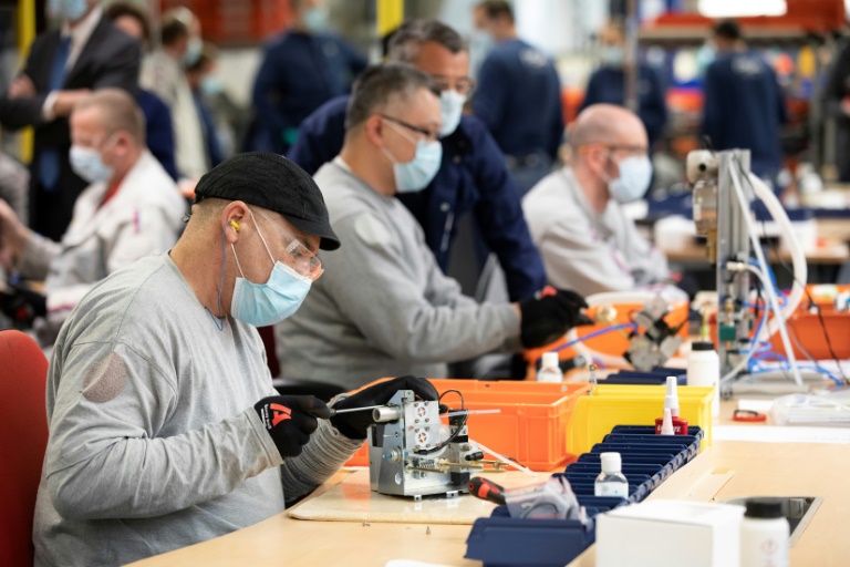 Comme une centaine de ses collègues de l'usine de Poissy (Yvelines), à 25 km au nord-ouest de Paris, Mme El Jaouani s'est portée volontaire pour assembler des éléments de ces machines de haute précision, dont les besoins ont explosé depuis le début de la crise du nouveau coronavirus.