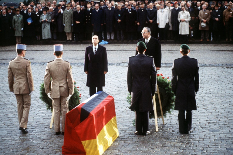 Cette initiative faisait suite à l'étreinte, chargée d'émotion, du chancelier Konrad Adenauer et du général de Gaulle en 1963, lors de la signature du "Traité de l'Elysée" instaurant la coopération franco-allemande. Mais le geste de 1984 eut, pour beaucoup d'observateurs, une charge symbolique supérieure parce que, à Douaumont, les deux dirigeants prenaient à témoins les morts.