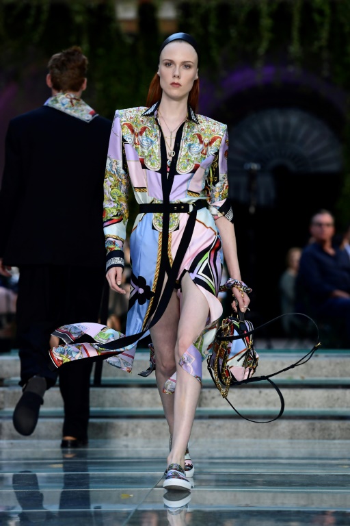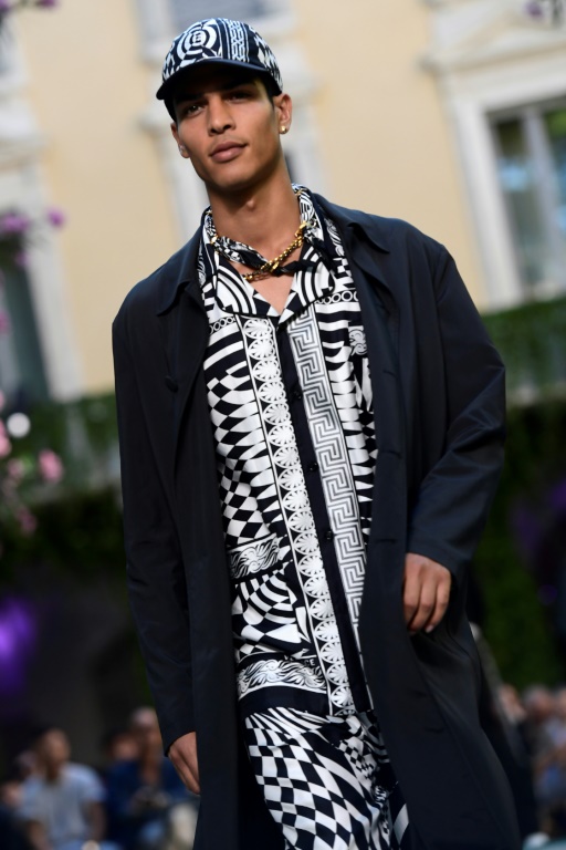Celle qui seconda longtemps Gianni Versace avant de reprendre le flambeau à sa mort, a proposé une collection légère et facile à porter aussi bien pour les hommes que pour les femmes. Pour lui, elle a notamment prévu un costume rayé noir et blanc, avec sa sacoche à damier assortie, un bombers matelassé ou encore une chemise coupée à la taille à porter avec un short de soie noir.