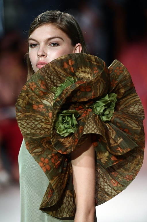 De longues robes vaporeuses en satin, au tomber parfois asymétrique, ont apporté une touche de légèreté, les mannequins adoptant alors une démarche aérienne contrastant avec les pas saccadés des premiers modèles.