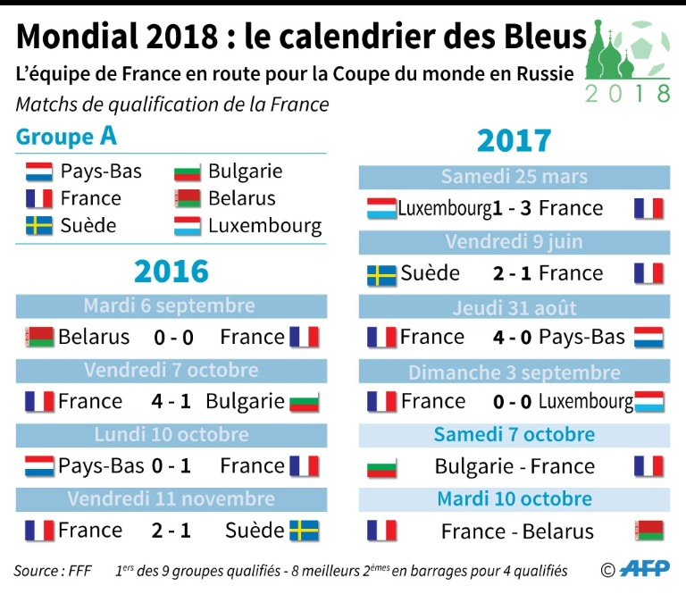 Surtout, le spectre des barrages, qui s'était dissous dans l'orangeade de jeudi, s'est remis à hanter la France du foot, qui se souvient des frissons vécus pour accéder aux deux dernières Coupes du monde: la fameuse main de Henry face à l'Eire (1-0, 1-1 a.p.) avant le Mondial-2010, et le renversement de l'Ukraine (0-2, 3-0) pour aller au Brésil-2014.