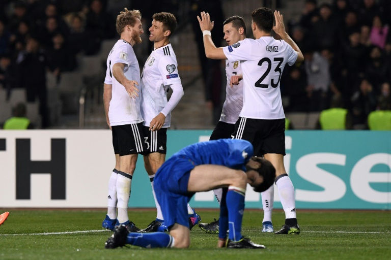 L'Allemagne a poursuivi son sans-faute dans les éliminatoires du Mondial-2018 après sa victoire convaincante en Azerbaïdjan (4-1) dimanche, tandis que l'Angleterre a battu la Lituanie (2-0) avec un but du revenant Jermain Defoe.