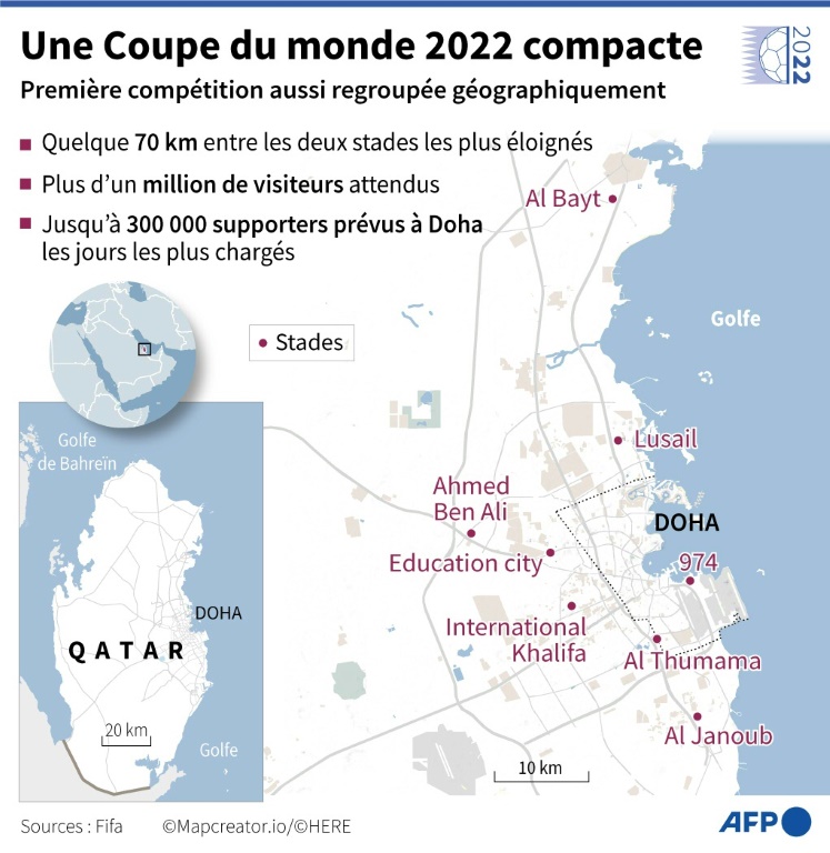 A un mois du Mondial-2022 (20 novembre-18 décembre), Coupe du monde la plus chère de l'histoire et événement gigantesque pour le minuscule Qatar, les ouvriers s'activent encore sur des chantiers et les organisateurs sont plus que jamais pressés de questions sur leur bilan.