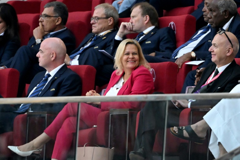 Pendant ce temps, en tribune officielle, la ministre de l'Intérieur en charge des sports Nancy Faeser, installée juste à la gauche de Gianni Infantino, a enfilé le fameux brassard inclusif "One Love", avant de tweeter la photo sur les réseaux sociaux. Et de remettre une veste couvrant le bandeau.