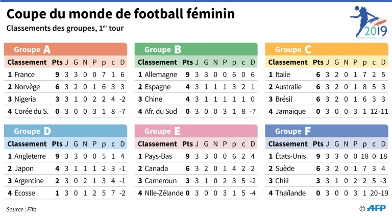 Si les Françaises franchissent cet obstacle - elles n'ont jamais été battues par les Brésiliennes - une montagne se dresse ensuite: les Etats-Unis, tenantes du titre, adversaire possible en quart de finale le 28 juin au Parc des Princes. "Si on doit prendre les Etats-Unis en quart, ce sera à nous de faire le nécessaire pour les battre tout simplement", expliquait Wendie Renard à l'AFP avant le début du tournoi.