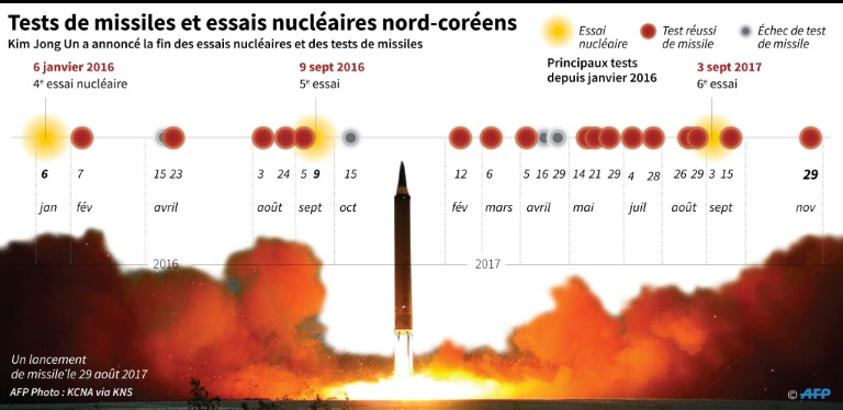 Depuis son arrivée au pouvoir fin 2011 au décès de son père, M. Kim a présidé à une accélération fulgurante des programmes nucléaire et balistique nord-coréens, les tensions sur la péninsule atteignant des sommets.