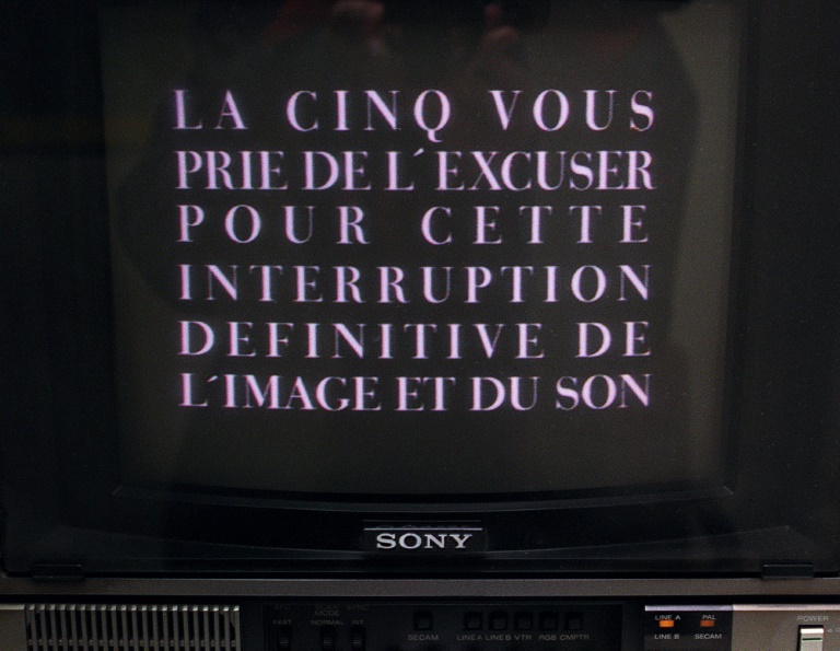 Puis l'image laisse place à cette épitaphe en plein écran: "La Cinq vous prie de l'excuser pour cette interruption définitive de l'image et du son".