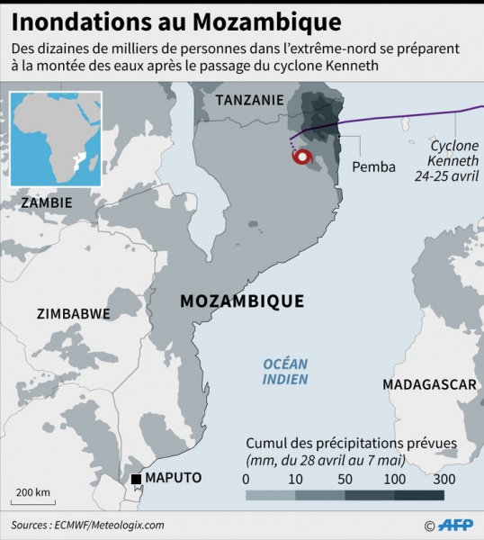 "Le cyclone Kenneth a frappé à la fin de la saison des pluies, quand le niveau des rivières est déjà haut, ce qui a augmenté le risque de débordements", a souligné l'Ocha. "Les besoins humanitaires du Mozambique n'en finissent pas d'augmenter, ce qui nécessite une réponse humanitaire d'ampleur."