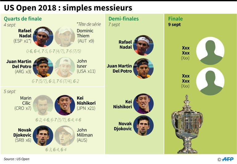 "Rafa a eu un parcours plus difficile. Mais il bénéficie de deux jours pour récupérer, il sera frais", estime néanmoins le N.7 mondial Marin Cilic, éliminé en quarts de finale.