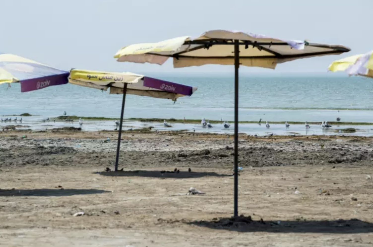 Sur la plage ne restent plus que quelques parasols épars et une poignée de chiens errants. Et pour atteindre l'eau, il faut désormais parcourir plusieurs dizaines de mètres dans une boue malodorante.