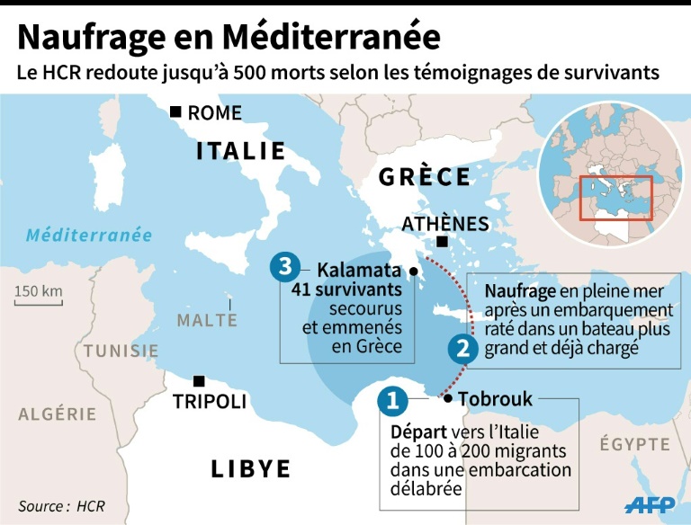 Le HCR redoutait mercredi jusqu'à 500 morts lors du récent naufrage dans le sud de la Méditerranée d'un bateau parti de Libye, un itinéraire dangereux vers l'Italie, plus fréquenté par les migrants vers la bonne saison.