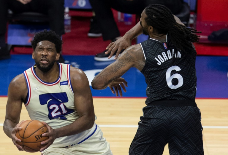 Les Sixers, portés par l'indispensable Joel Embiid, ont laborieusement remporté (123-117) leur duel au sommet de la conférence Est, face à des Nets démunis, mercredi en NBA, lors d'une soirée où Luka Doncic et Stephen Curry ont encore fait des miracles.