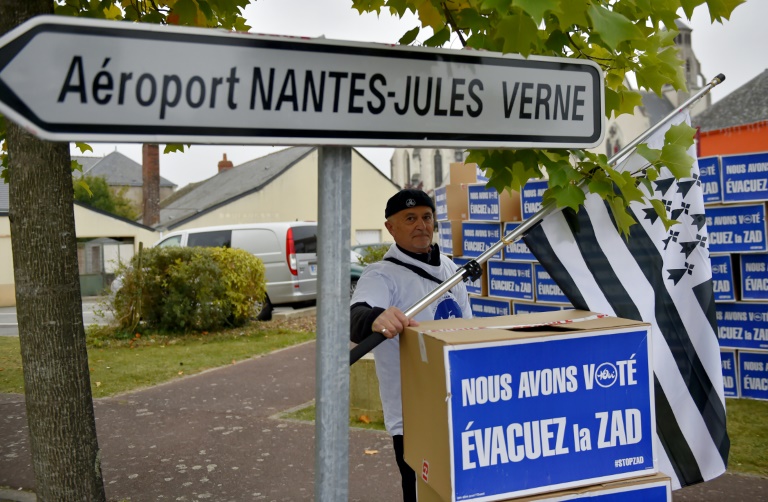 Peu avant 09H00, une vingtaine de militants de l'association pro-aéroport Des ailes pour l'Ouest a sorti d'un camion siglé "Les déménageurs de la Zad" des centaines de cartons, les disposant sur une place de Notre-Dame-des-Landes.