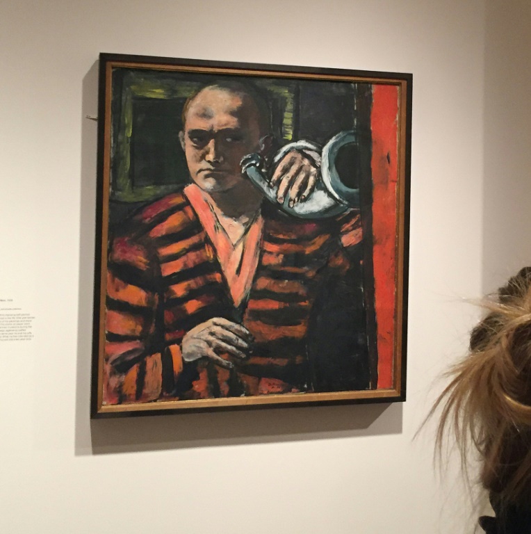 Dans ce même tableau, pour la première fois, Beckmann apparaît dans une pose détendue, lui qui se dépeignait systématiquement dans une allure formelle, comme pour singer le sérieux.