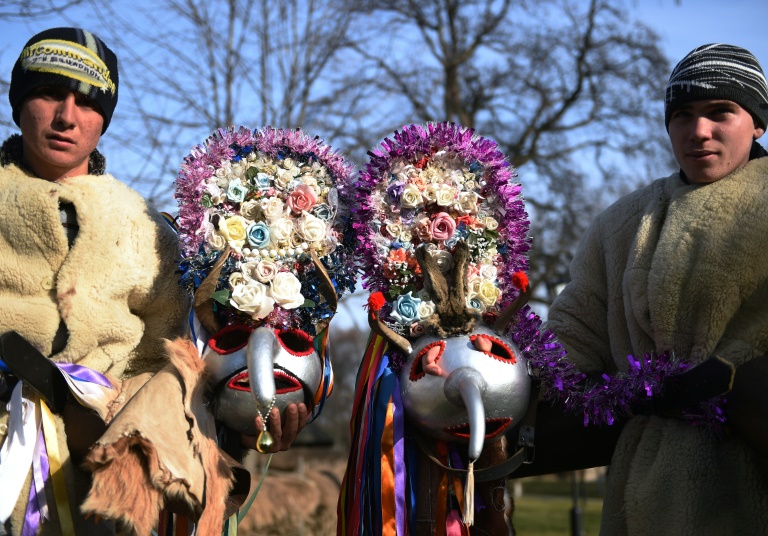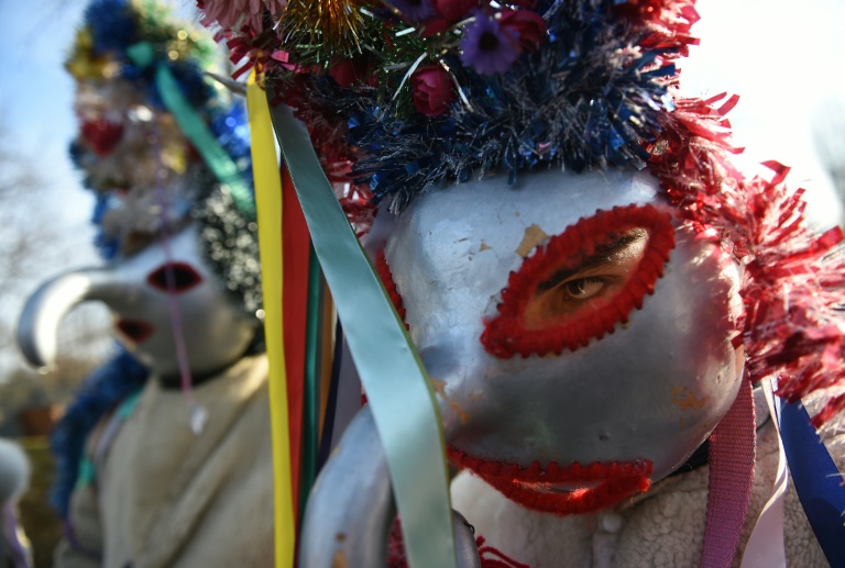 Des silhouettes étranges, vêtues de peaux de moutons et coiffées de masques épouvantables surgissent dans les rues de Luncavita: à la veille de Noël, les jeunes hommes de ce village de l'est de la Roumanie se déguisent en "mochoï" pour "chasser les mauvais esprits".