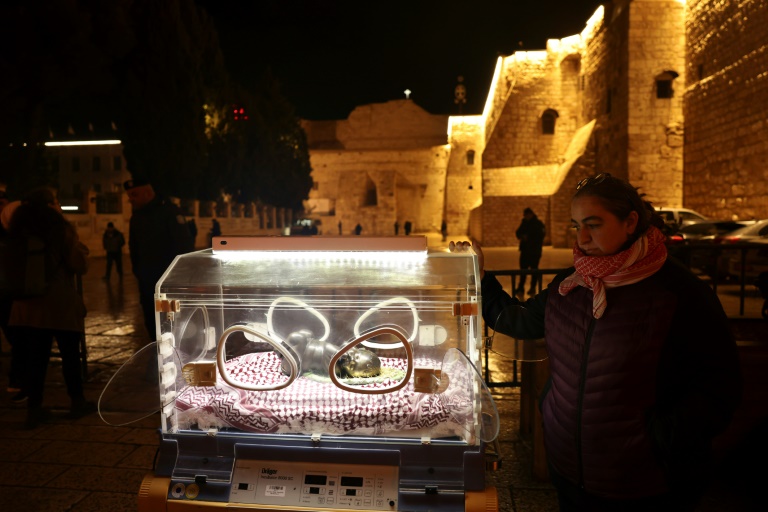 Haut-lieu du christianisme, la cité de Bethléem - où est né Jésus-Christ selon la tradition -, en Cisjordanie occupée, a été désertée par les pèlerins cette année et a annulé la majeure partie des célébrations de Noël en raison des combats dans la bande de Gaza.