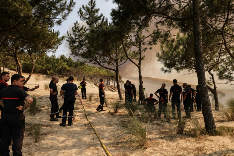 Par une chaleur caniculaire, avec plus de 40°C, et un ciel devenant gris-jaune, quelque 8.000 personnes ont dû quitter deux quartiers de la commune de La Teste-de-Buch, et 8.000 autres la commune de Landiras, à 50 kilomètres à l'est, évacués par la police.