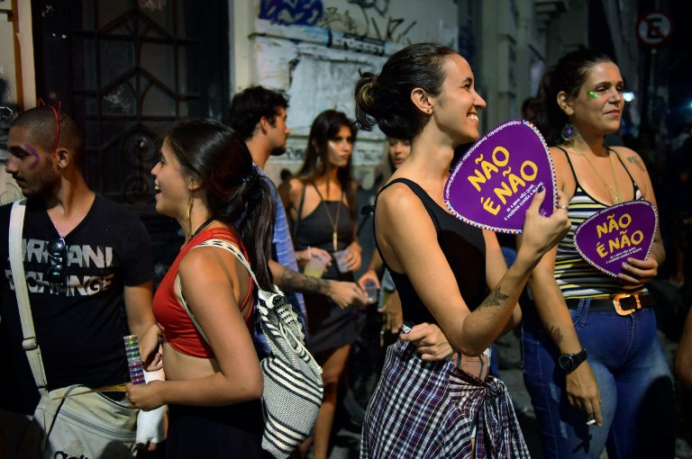 "Non c'est non", dans le sillage de la campagne #MeToo lancée après l'affaire Weinstein aux Etats-Unis contre le harcèlement des femmes, les Brésiliennes se sont mobilisées à l'occasion du carnaval où les agressions sont innombrables.
