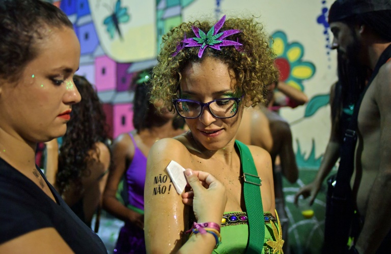 Certaines ont même arboré ce slogan en tatouage éphémère sur les épaules, les bras, la poitrine. D'autres dansent dans les rues du carnaval avec des éventails en carton disant: "Não é não" (Non c'est non"). Le carnaval de Rio --la plus grande fête du monde sous les 40 degrés de l'été tropical, avec des millions de fêtards très dévêtus et l'alcool qui coule à flot-- est tous les ans le théâtre de multiples agressions sexuelles contre les femmes.