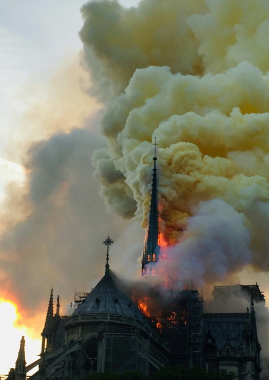 Cette pièce emblématique a été bénie au sol dans l'après-midi par l'archevêque de Paris, Monseigneur Laurent Ulrich. Puis elle a été acheminée avec une grue jusqu'au sommet de la flèche, à 96 mètres de hauteur, sous le soleil de la capitale, a constaté l'AFP.