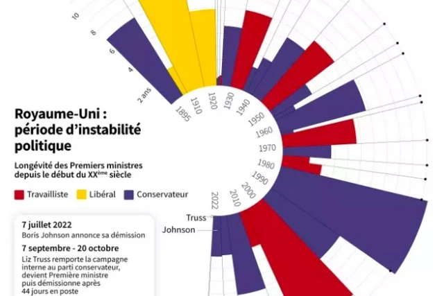Signe du niveau d'instabilité et des coups de théâtre qui se succèdent au Royaume-Uni, l'ex-banquier et ministre des Finances devient le troisième Premier ministre en deux mois et le cinquième en six ans. Et ce, cinq jours seulement après l'annonce de la démission de Liz Truss, restée 49 jours à Downing Street en raison de la tempête provoquée par son programme économique.