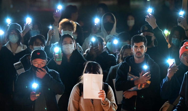 Au sein de la plus ancienne université de Hong Kong, plus d'une dizaine de personnes ont entraîné la foule à chanter des slogans comme "donnez-moi la liberté, ou donnez-moi la mort".
