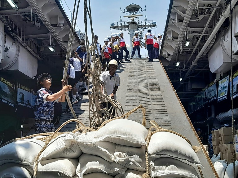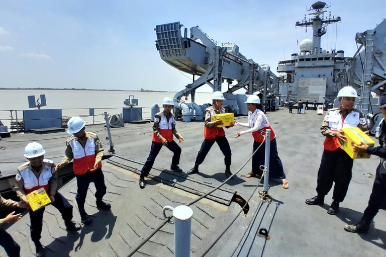 La marine indienne a livré samedi des centaines de tonnes d'aide alimentaire à la Birmanie, frappée par un séisme, au lendemain d'une rare rencontre entre le Premier ministre indien Narendra Modi et le chef de la junte militaire, Min Aung Hlaing.