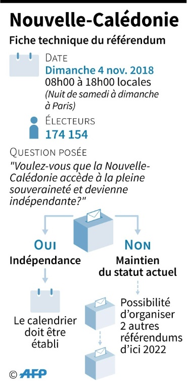 Les électeurs de cet archipel français, colonisé en 1853 et disposant d'importantes réserves de nickel, étaient appelés à dire s'ils voulaient ou non "que la Nouvelle-Calédonie accède à la pleine souveraineté et devienne indépendante". Le référendum est attentivement surveillé par Paris, à 18.000 km de là. Le président Emmanuel Macron doit s'exprimer à la télévision à 13H00 dimanche (23H00 heures locales) à l'issue de la proclamation définitive du résultat.