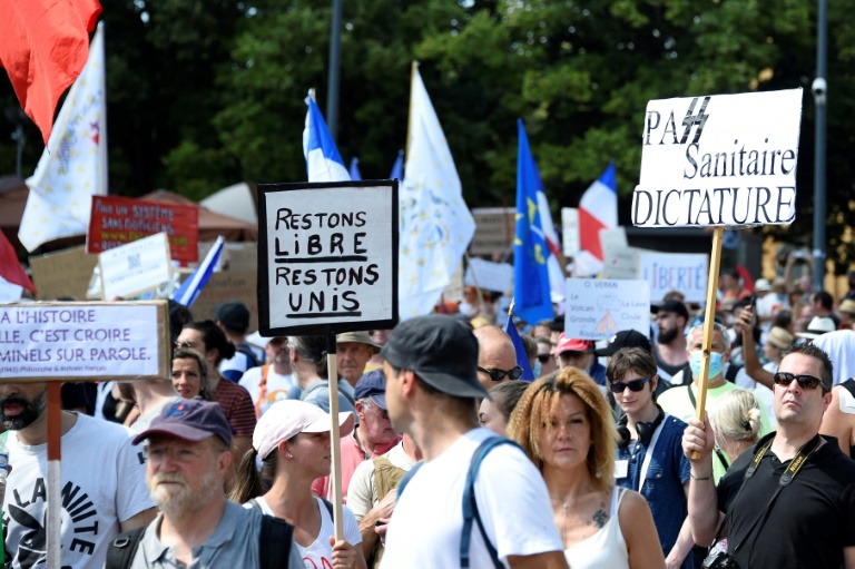 Parallèlement à ces annonces, les manifestations contre le pass sanitaire ont réuni samedi 214.845 personnes selon le ministère de l'Intérieur et 388.843 personnes au "minimum" selon le collectif militant Le Nombre Jaune.