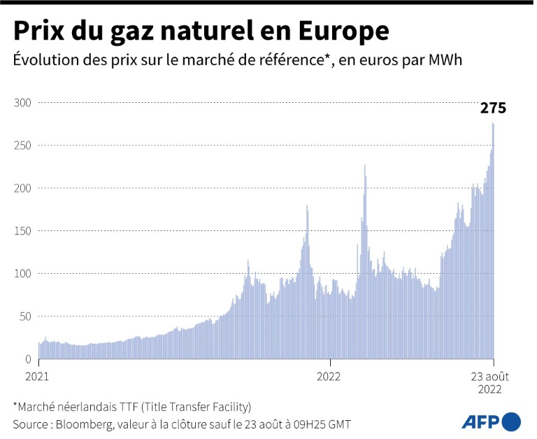 Aux craintes de pénuries énergétiques l'hiver prochain --conséquence des baisses de livraisons de gaz-- s'ajoute un nouveau bond des prix de l'électricité qui ont atteint ces derniers jours des sommets, risquant de faire flamber les factures des consommateurs européens.
