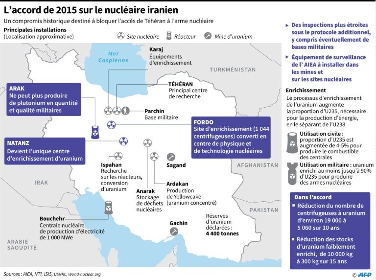 Dans une lettre à Donald Trump, 38 généraux et amiraux en retraite soulignent aussi que cet "accord international a permis de bloquer l'accès de l'Iran à l'arme nucléaire". D'après ces militaires, "l'Iran a démantelé les deux tiers de ses centrifugeuses, renoncé à 98% de son stock sensible d'uranium et bétonné le coeur de son réacteur à eau lourde". De fait, l'autorité onusienne de surveillance, l'Agence internationale de l'énergie atomique (AIEA), avait félicité l'Iran en juin pour le respect de ses engagements. Mais les Européens s'inquiètent des pressions des Etats-Unis. "Nous disons aux Américains que le JCPOA n'est pas parfait mais que c'est la meilleure option", prévient un haut responsable européen à Washington. "Perdre le JCPOA serait une erreur", insiste-t-il.