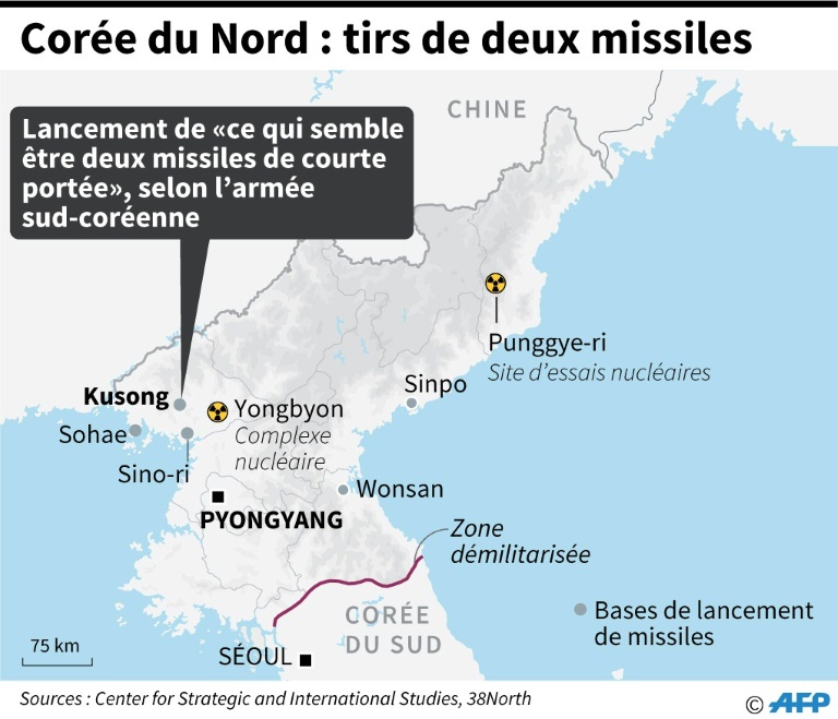 Depuis, le leader nord-coréen a mis en cause la bonne foi de Washington et réclamé un changement d'attitude américaine. Jeudi, le Nord a "tiré ce qui semble être deux missiles courte-portée", a déclaré dans un communiqué le comité sud-coréen des chefs d?état-major interarmées. Lancés de Kusong, dans la province de Pyongan Nord, ils ont parcouru respectivement 270 et 420 kilomètres en direction de l'est.