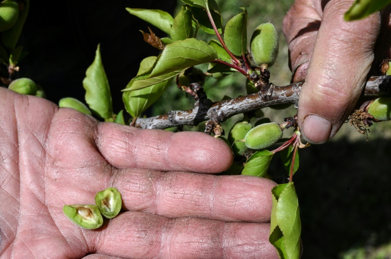 "Au moins 80% de notre production est touchée", explique Daniel Betton, qui exploite 55 hectares d'abricotiers à Mercurol-Veaunes (Drôme). "Les fruits qui étaient déjà sortis ont changé de couleur. A l'intérieur, l'amande est passée de blanche à brunâtre".