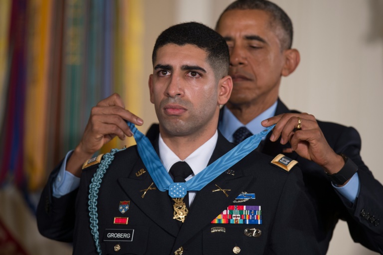 Un "héros", un "Américain envers lequel nous pouvons tous être reconnaissants": Barack Obama a remis jeudi à la Maison Blanche la Médaille d'honneur au capitaine Florent Groberg, soldat d'origine française qui s'est illustré pour son courage en Afghanistan.