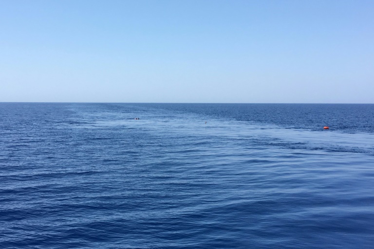 Il était midi environ lorsqu'un premier migrant à bout de patience, sous une chaleur accablante, a plongé dans la Méditerranée, tandis qu'un deuxième l'a suivi et qu'un troisième a été empêché de sauter par ses compagnons d'infortune à bord de l'Ocean Viking, où un journaliste de l'AFP est embarqué.