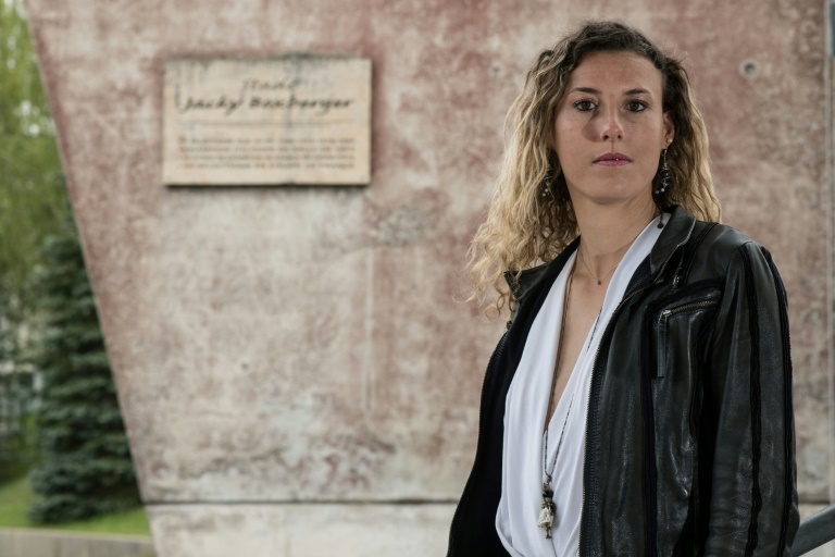 Box-ber-ger. Trois syllabes qui claquent. A prononcer avec le "r" qui traîne légèrement comme à Montbéliard (Doubs) en Franche-Comté. Dans le stade d'athlétisme, un imposant bloc de béton gris-rouge abrite des bureaux et une plaque qui honore le héros local: Jacky Boxberger, gloire de l'athlétisme du siècle dernier et père d'Ophélie Claude-Boxberger. "Ca a mal vieilli", remarque l'athlète de 31 ans, veste en cuir, apprêtée, qui a troqué les pointes pour les talons hauts en cette matinée nuageuse de juin.